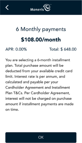 For installment options to be enabled, you need to contact your client consultant and ensure that your device is on the latest software version. After your client consultant team enables the feature, you will need to perform a Sync command.